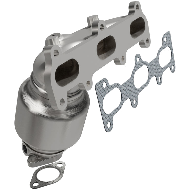 Keep the check engine light off with MagnaFlow OEM Grade Federal/EPA Compliant Direct-Fit Catalytic Converter 51634. With features including free-flowing mandrel-bent tubing and highly corrosion resistant stainless steel construction, easily install this spun body converter yourself using the proper tools, no cutting or welding required. MagnaFlow's state-of-the-art metrology department uses the latest 3D scanning systems during research and development, so you can be confident that your new part will fit and function like the original equipment. By replicating the OE spun body design, the single laser fusion weld greatly reduces the possibility of a leak, and our compact, low-mass design also allows for greater thermal efficiency. Designed to fit the 2007-2009 Hyundai Santa Fe, 2007-2010 Kia Rondo, and more, this direct-fit catalytic converter also interchanges with OE parts 28510-3E830 and 28510-3E836, among others. Avoid potential exhaust leaks by using the included gaskets to get a proper seal. This replacement part is designed to meet or exceed Federal emissions requirements set forth by the EPA, complying with legal standards for OBDII Federally registered vehicles with California or Federal/EPA Emission systems.